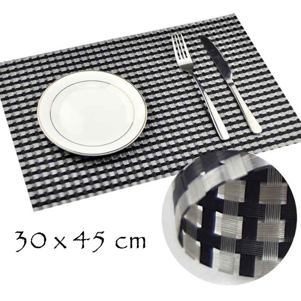 4 Pcs Non-slip Protection Table Mats Dining Placemats PVC Placemats Woven Placemats Coffee Shop Mats, Black and White 4 Pcs Non-slip Protection Table Mats Dining Placemats PVC Placemats Woven Placemats Coffee Shop Mats, Black and White