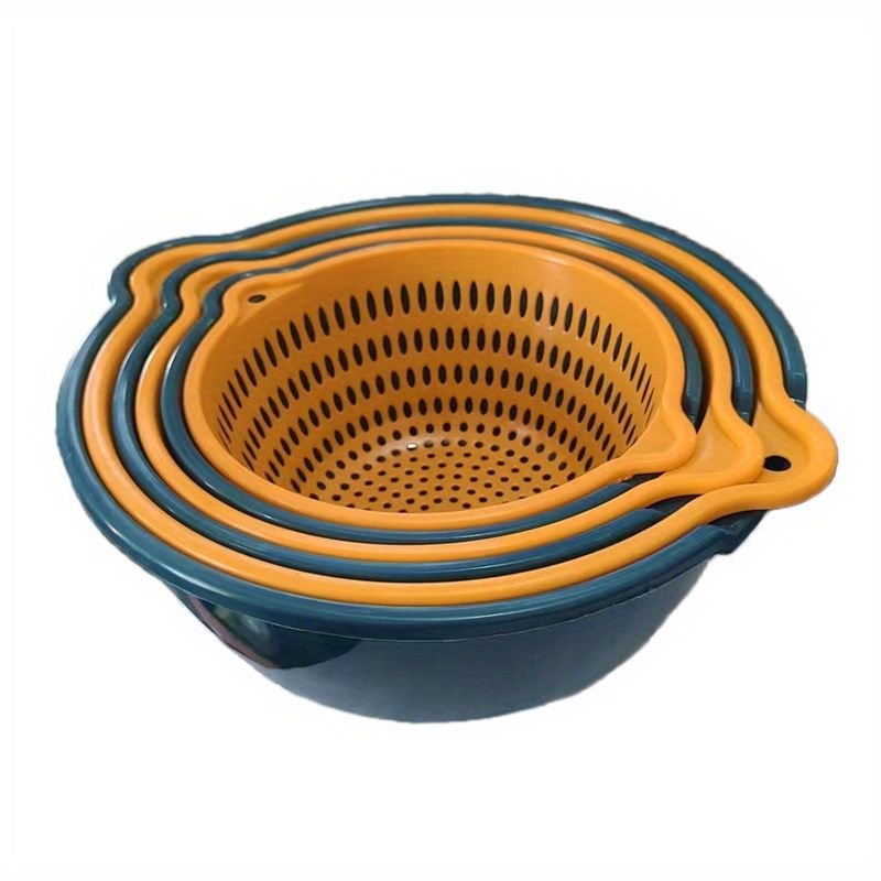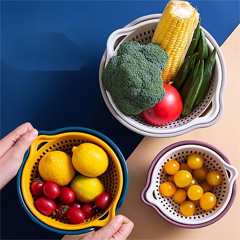 Home > 6pcs Household Drain Basket Set; Plastic Double Layered Kitchen Food Strainer Fruits Vegetable Washing Basket; Stackable Drain Bowls For Cleaning Wash