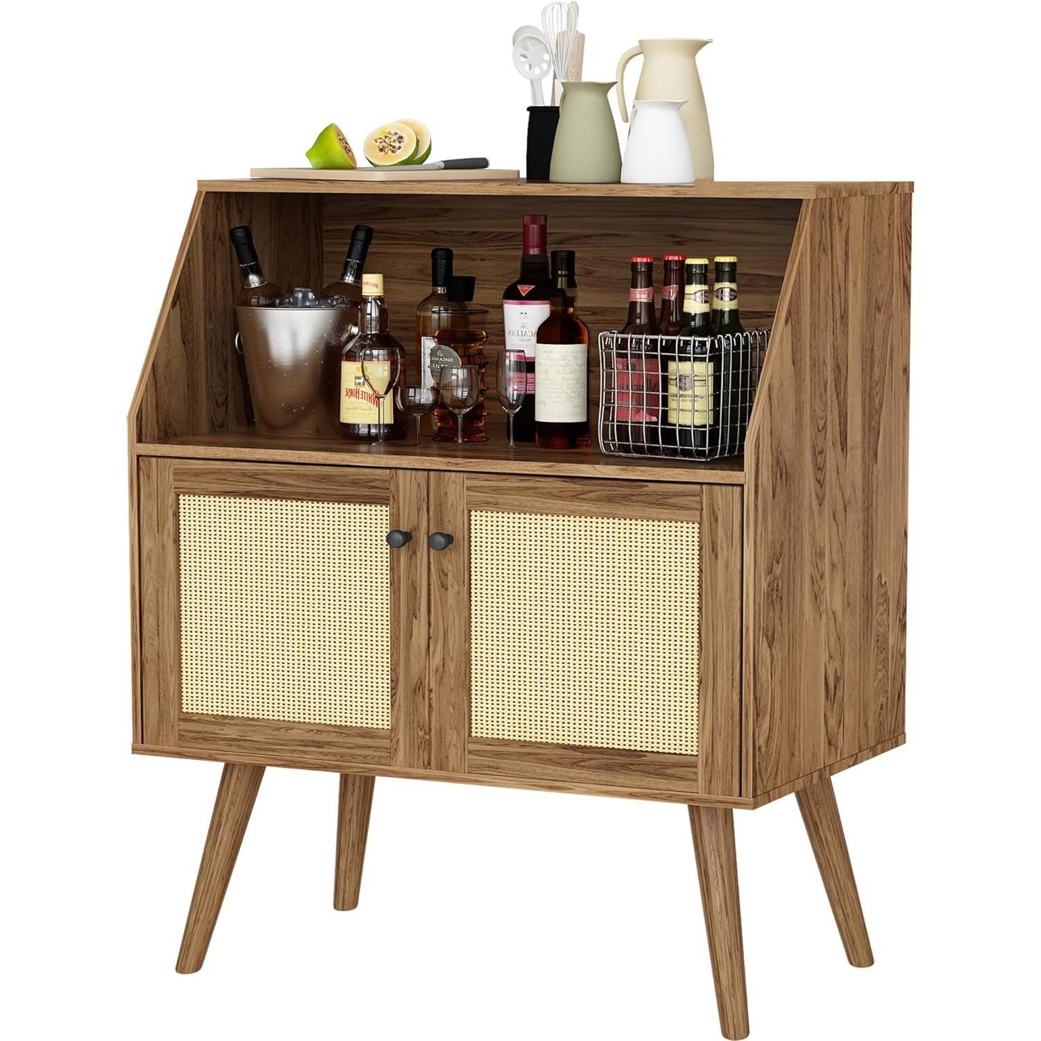 • Our liquor cabinet made of rattan,MDF and Metal material,very durable and scratch-resistant. The material is safe and environmentally friendly, and will not harm your health. Long service life, even after many years of use, it is not easy to be damp or deformed like ordinary wood.Smoothly painted surface is very easy to clean.