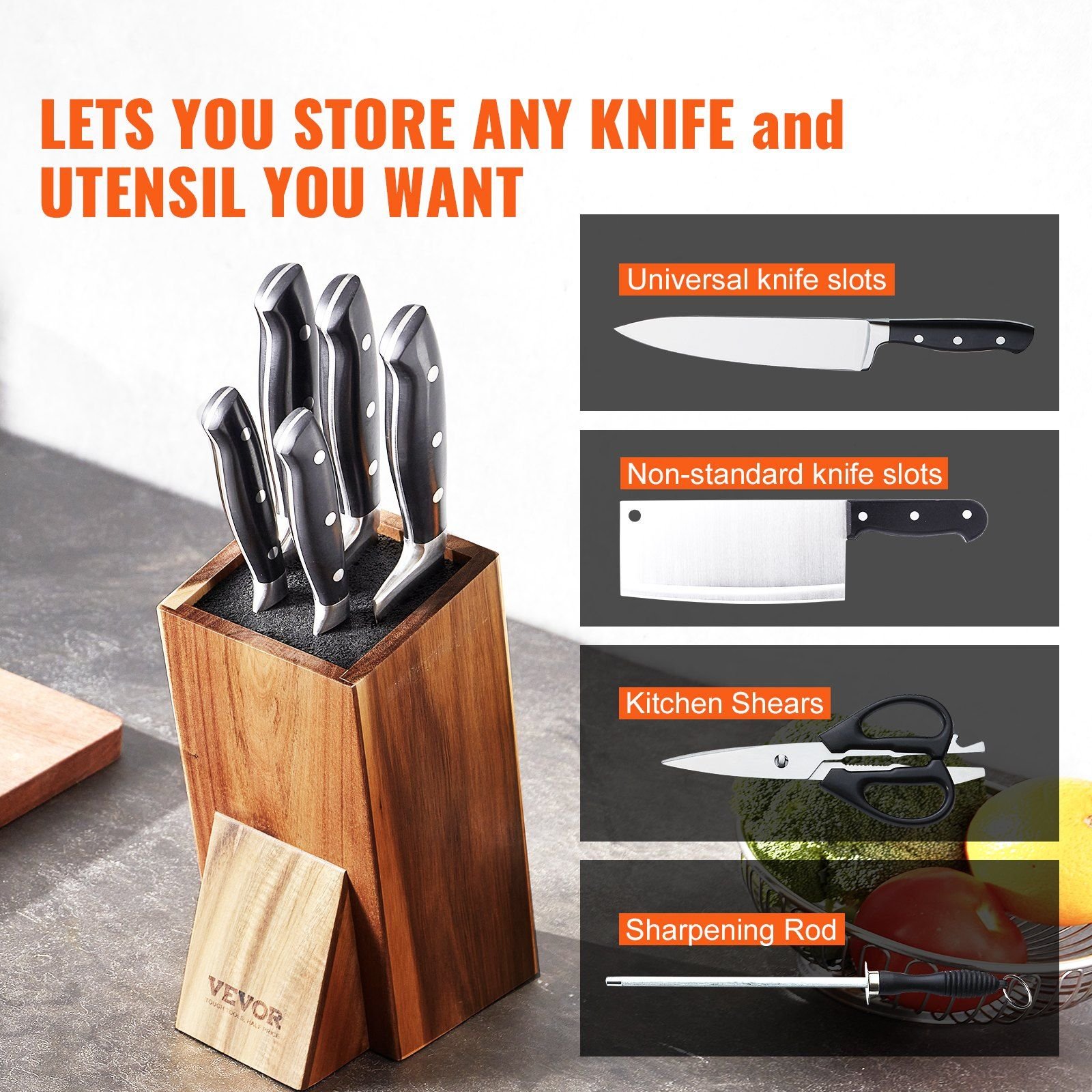 VEVOR Universal Knife Holder, Acacia Wood Knife Block Without Knives, Extra Large Knife Storage Holder Stand with PP Brush VEVOR Universal Knife Holder, Acacia Wood Knife Block Without Knives, Extra Large Knife Storage Holder Stand with PP Brush VEVOR Universal Knife Holder, Acacia Wood Knife Block Without Knives, Extra Large Knife Storage Holder Stand with PP Brush