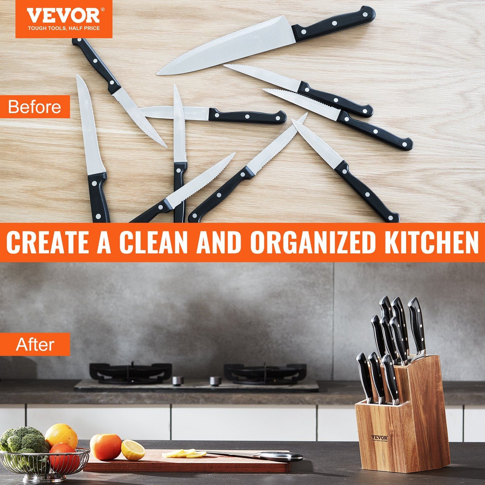 VEVOR Universal Knife Holder, Acacia Wood Knife Block Without Knives, Two-Tier Knife Storage Stand with PP Brush VEVOR Universal Knife Holder, Acacia Wood Knife Block Without Knives, Two-Tier Knife Storage Stand with PP Brush VEVOR Universal Knife Holder, Acacia Wood Knife Block Without Knives, Two-Tier Knife Storage Stand with PP Brush